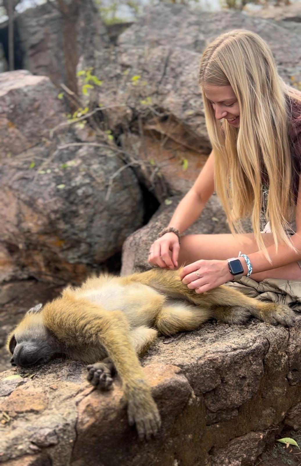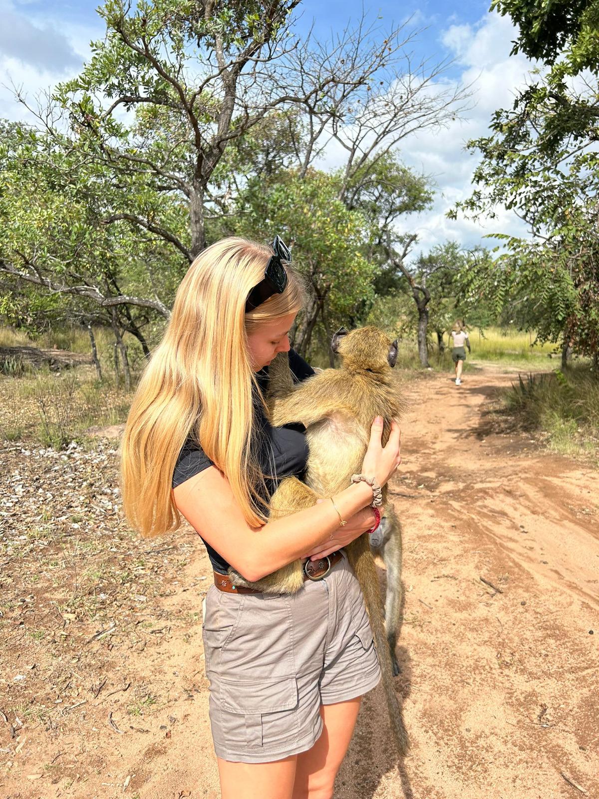 The rest of the time we fed and provided enrichment for the resident animals in the hope that they will one day be released. We would also go on daily bush walks with the baboons where we got to play and groom them, imitating their natural life in the wild and preparing them for release. They were a big part of our trip, and it will be so rewarding to hear about their release in the near future.